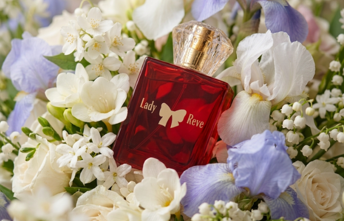 Note de coeur: jasmin blanc, iris, freesia, muguet